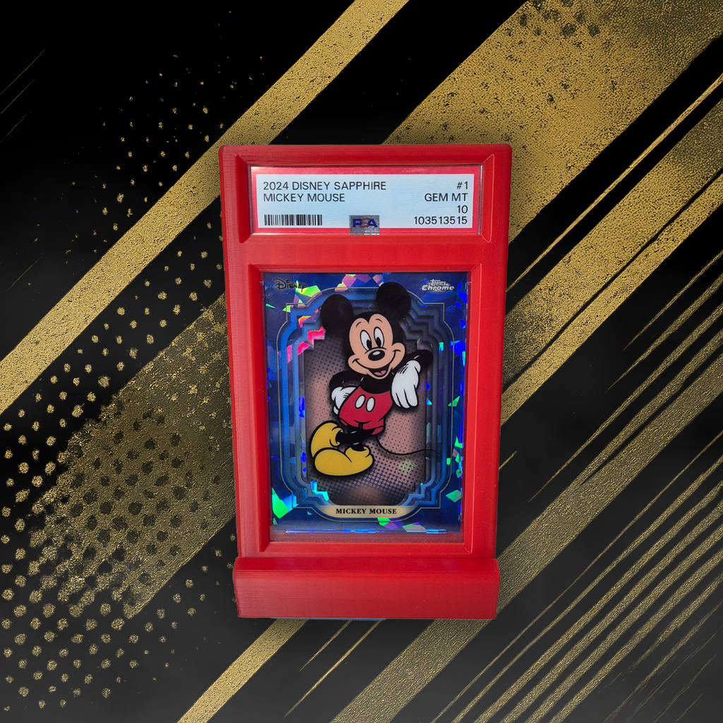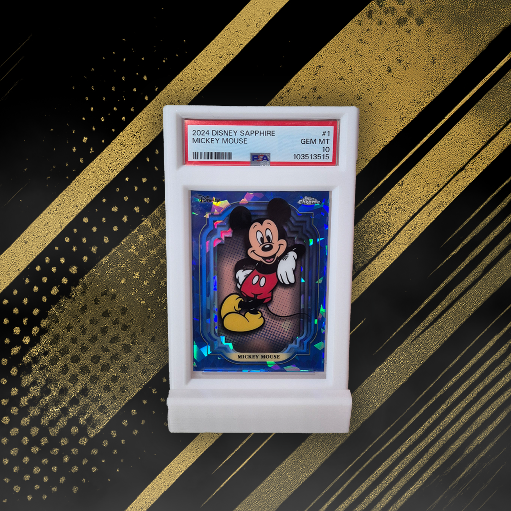 Crafted to perfectly fit standard PSA slabs, each stand is durable, lightweight, and angled for the ideal viewing experience — whether on your desk, shelf, or at card shows.